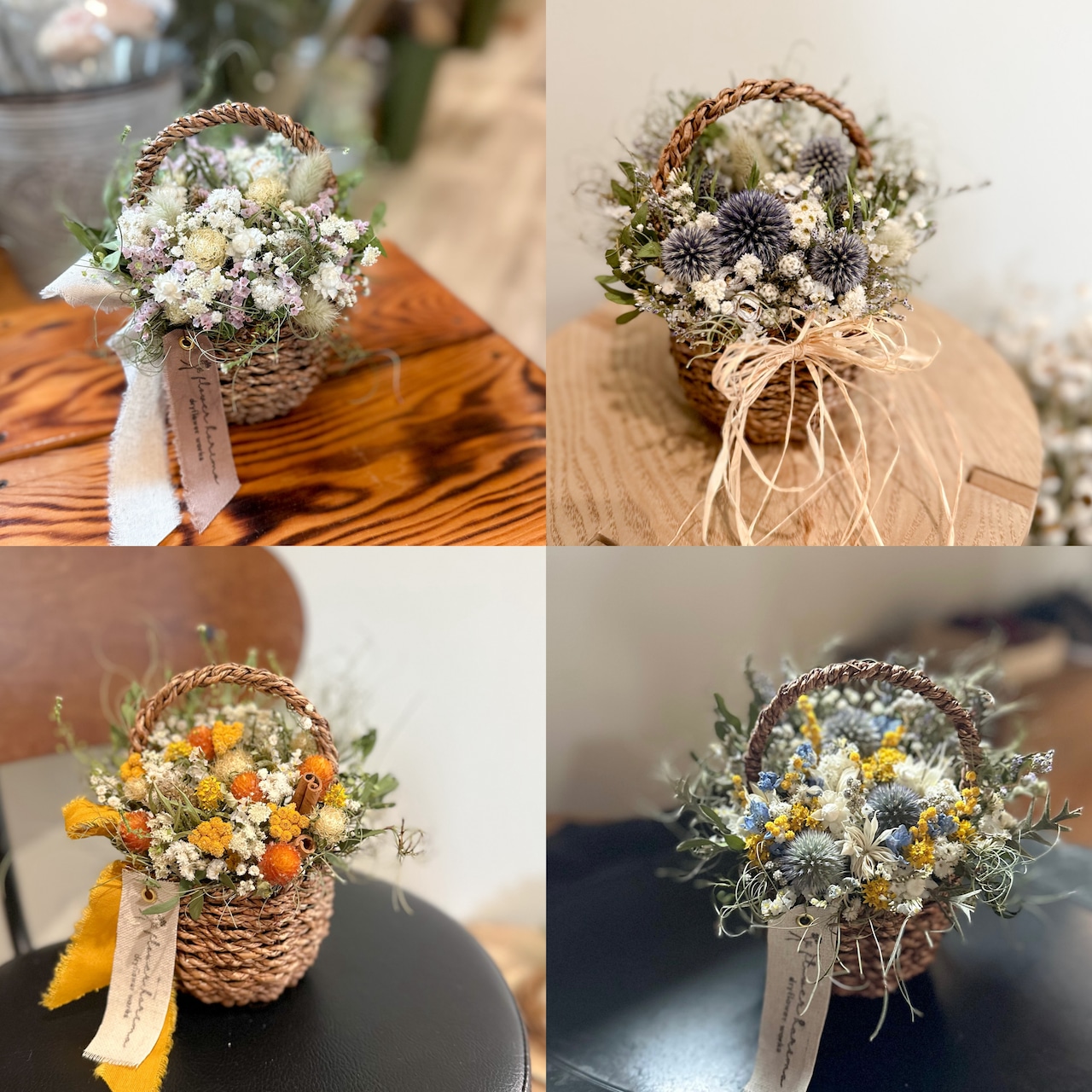 細かなドライフラワーたちがアレンジされたバスケット